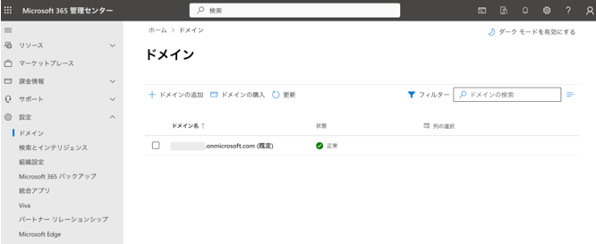 ドメインをMicrosoft 365で新規購入する場合は「ドメインの購入」をクリックし、画面の指示に従い希望のドメインを購入してください。この場合DNS設定は自動で行われるため、設定は不要です。