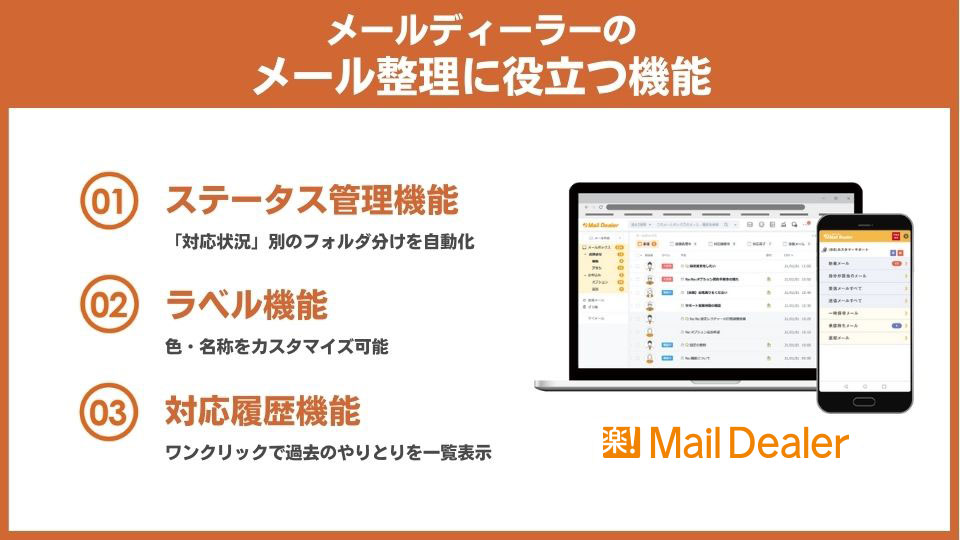 メールディーラーのメール整理に役立つ機能を紹介します。