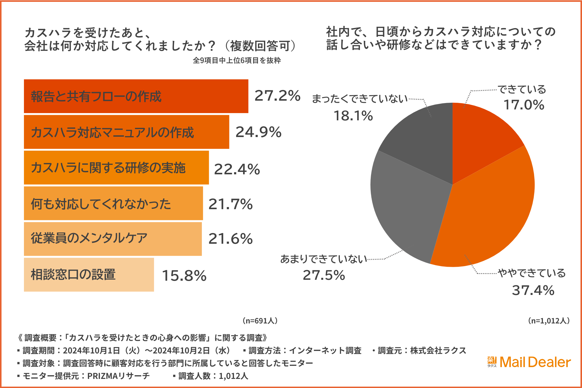 - カスハラへの対策ができている会社は半数にとどまる